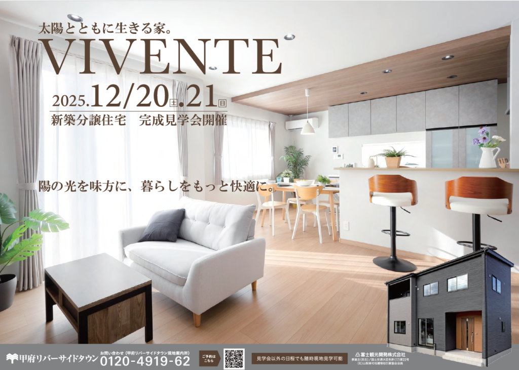 この度、12月20日(土).21日(日)に12月に完成したばかりの弊社モデルハウスの完成見学会を開催いたします!