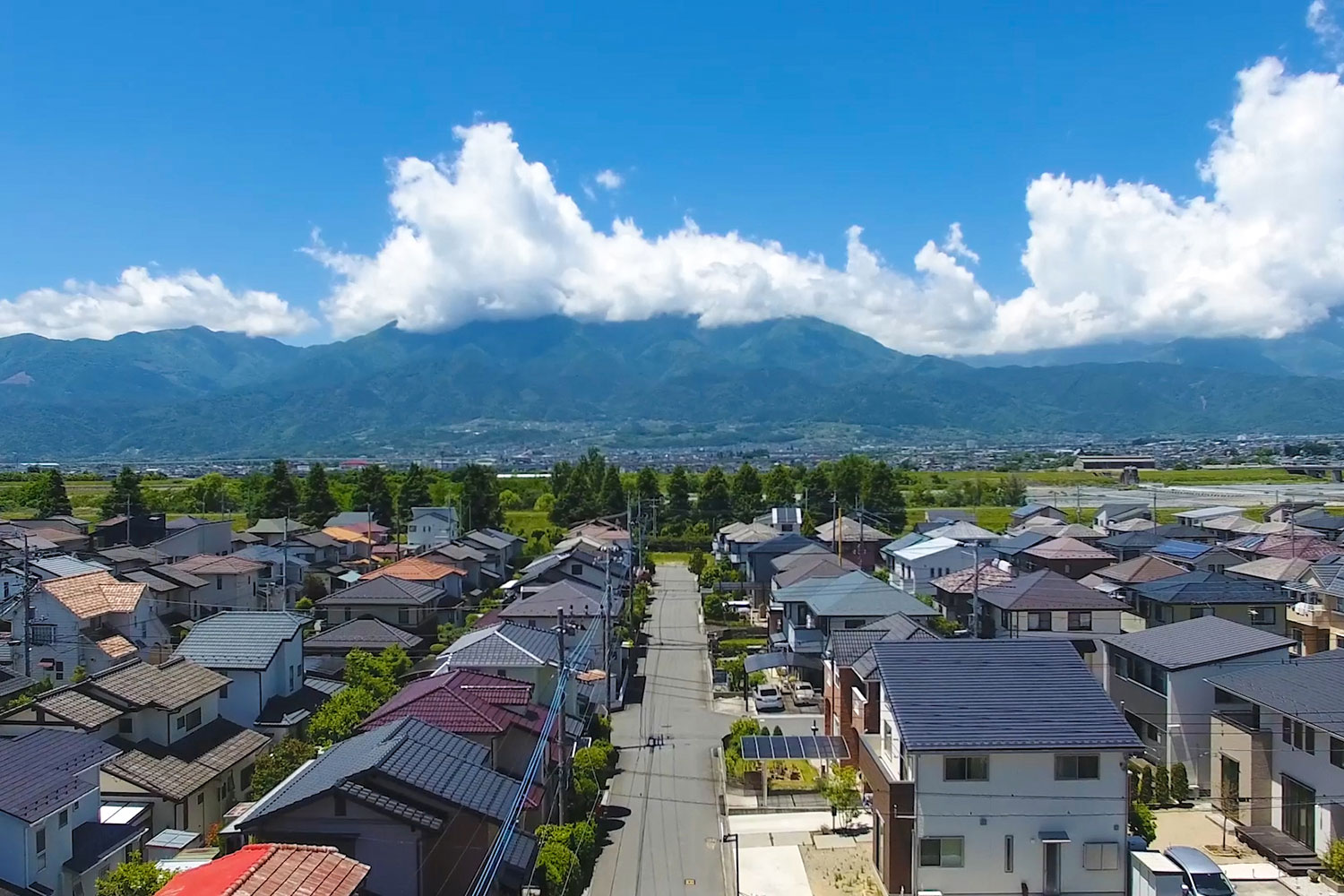 大きなリビング窓、高い天井の大空間でも家中暖かく、寒暖差が激しい山梨でも長く心地よい生活ができます。